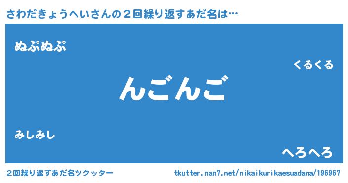 | ヘコむあだ名 | 『さわっちょ』『さわだきょうへい(苦笑)』 |