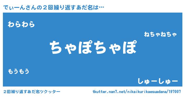| 意味不明あだ名 | 『めかぶ科でぃーん属』『自称でぃーん』 |