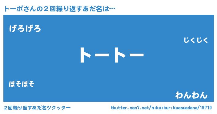 | 男性向けラノベタイトル風あだ名 | 『トーポアートオンライン』 |