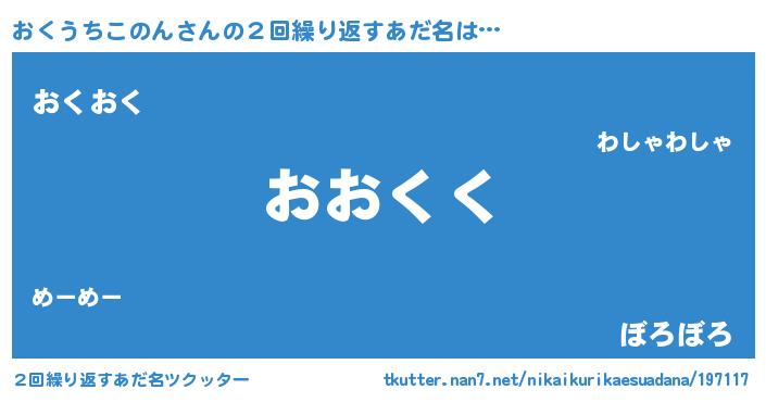 | 意味不明あだ名 | 『おくうちこのんフォーエバー』 |