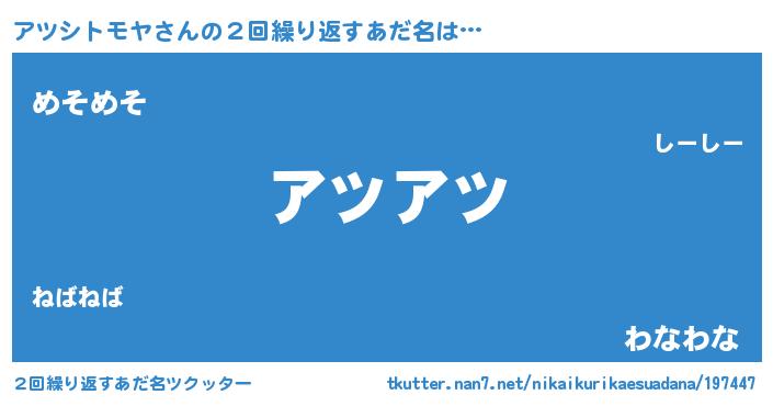 | ヘコむあだ名 | 『アツにゅー』『アツを』『つくし』 |