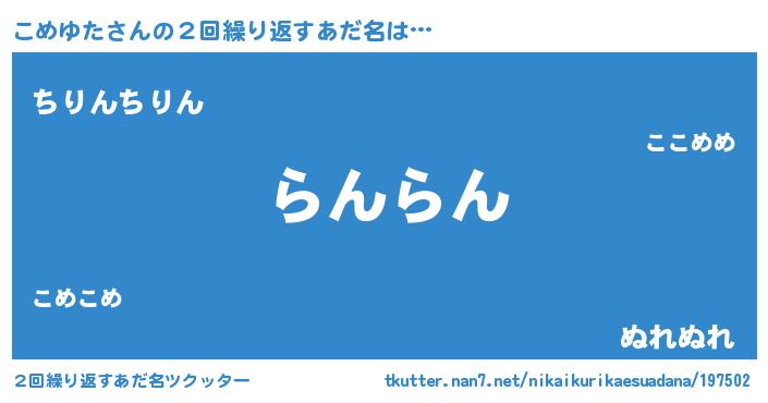 | 欧米人風あだ名 | 『トリンドルこめゆた』 |