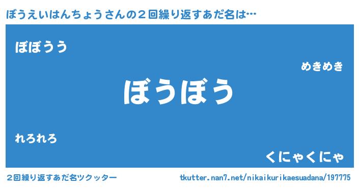 | ポケモン風あだ名 | 『ボウチュウ』『ボウエダネ』 |