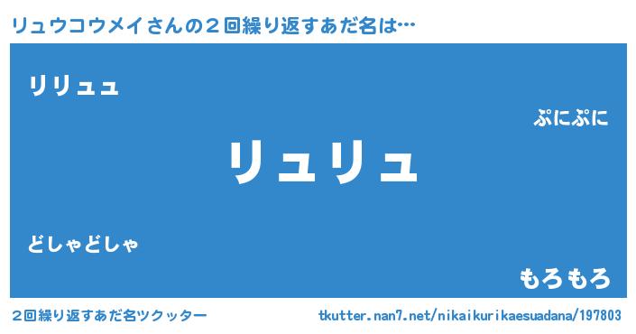 | ヘコむあだ名 | 『リュにゅー』『豆乳』『リュ太郎』 |