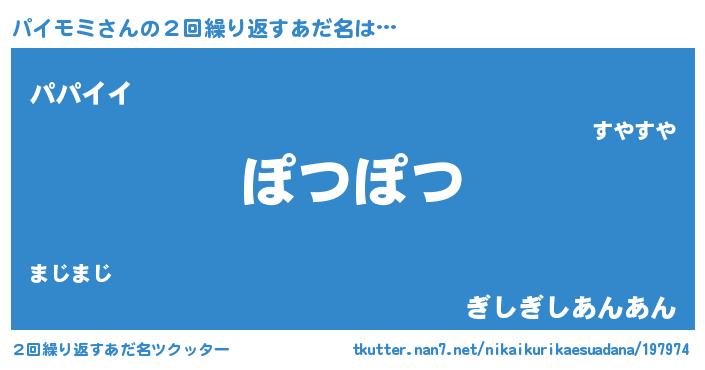 | 欧米人風あだ名 | 『ダニエルパイモミ』 |