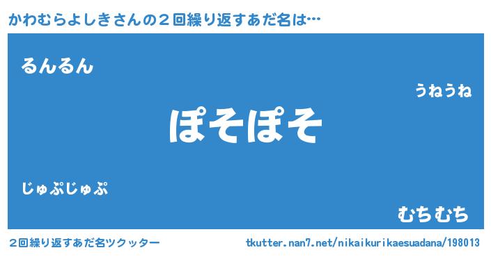 | ピコ太郎風あだ名 | 『カカ太郎』『カワ次郎』『カコ四郎』 |