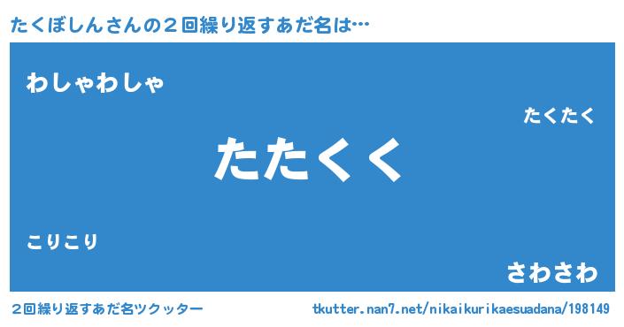 | 意味不明あだ名 | 『たくぼしんフォーエバー』 |