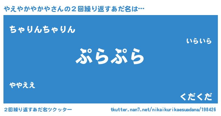 | ピコ太郎風あだ名 | 『ヤヤ太郎』『ピコヤ郎』『ヤエ六郎』 |