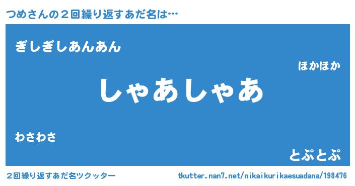 | 意味不明あだ名 | 『住所不定無職つめ(62歳)』『永久保存つめ』 |