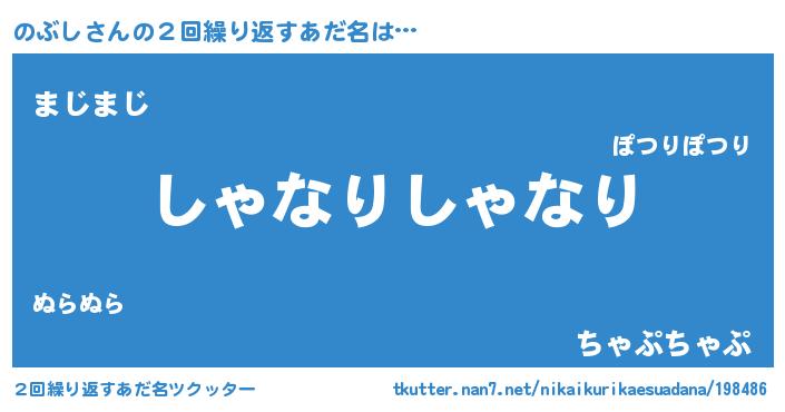 | 意味不明あだ名 | 『住所不定無職のぶし(77歳)』『自称のぶし』 |