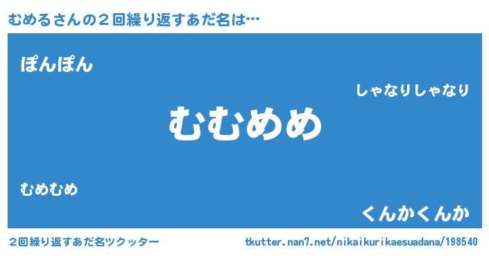 | 意味不明あだ名 | 『むめるフォーエバー』『永久保存むめる』 |