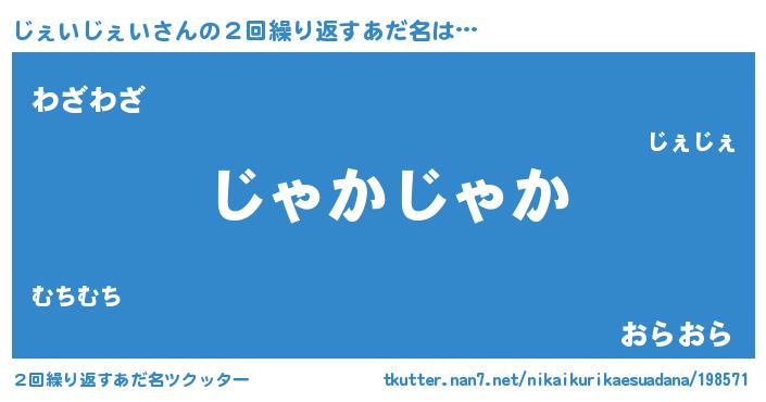 | 意味不明あだ名 | 『住所不定無職じぇいじぇい(85歳)』 |
