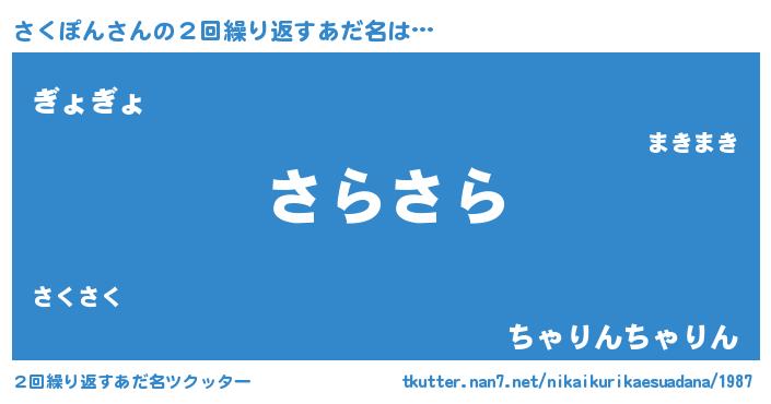 | ヘコむあだ名 | 『さくぽん(震え声)』『さくにゅー』 |