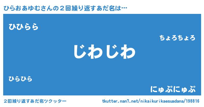 | 意味不明あだ名 | 『住所不定無職ひらおあゆむ(53歳)』 |