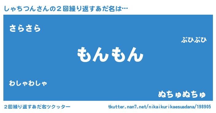 | 意味不明あだ名 | 『自称しゃちつん』 |