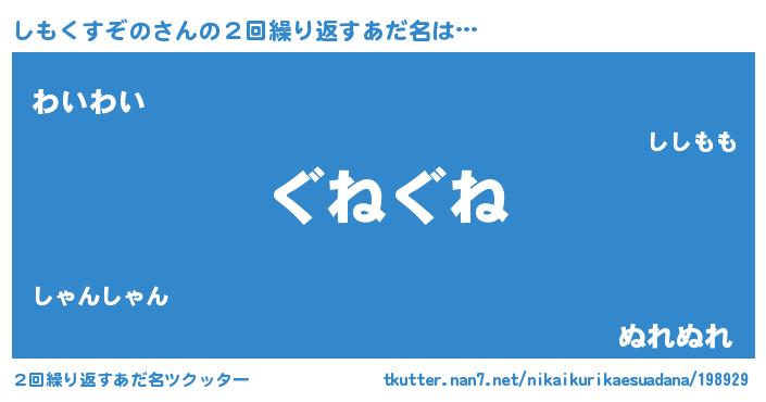 | ヘコむあだ名 | 『しもくすぞの(苦笑)』『しもを』 |