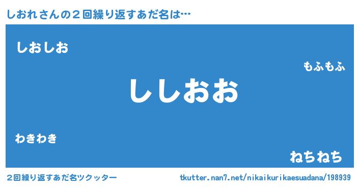 | 意味不明あだ名 | 『しおれフォーエバー』『ペロリンしおれ』 |