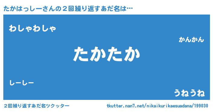 | ヒーロー風カッコイイあだ名 | 『スーパータカハッシー』『炎刃騎士タカ』 |