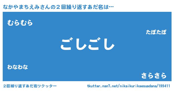| 可愛いあだ名 | 『なかやまちえみママ』『なかうちぇる』 |