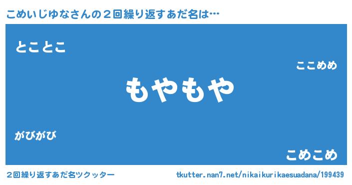 | 男性向けラノベタイトル風あだ名 | 『Re:こめいじゆなから始める異世界生活』 |