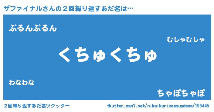 | ヘコむあだ名 | 『ザファイナル(震え声)』『ザフふぇ~』 |