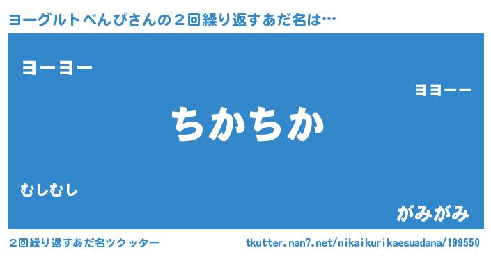| 男性向けラノベタイトル風あだ名 | 『緋弾のヨーグルトベンピ』 |