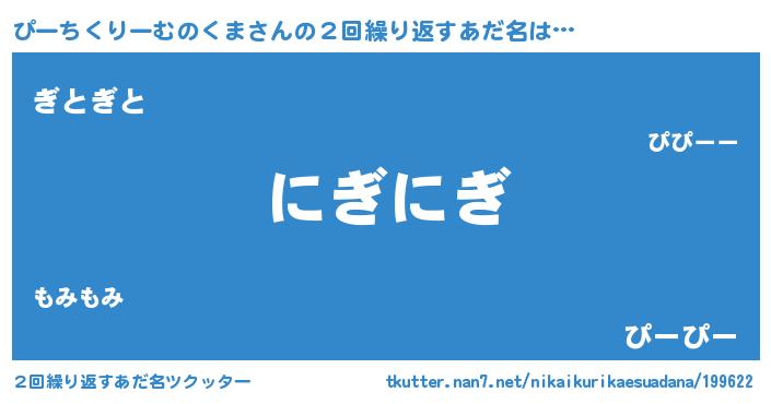 | 欧米人風あだ名 | 『ウサインぴーちくりーむのくま』 |