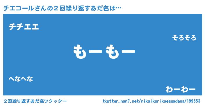 | 男性向けラノベタイトル風あだ名 | 『Re:チエコールから始める異世界生活』 |