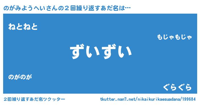 | 意味不明あだ名 | 『住所不定無職のがみようへい(4歳)』 |