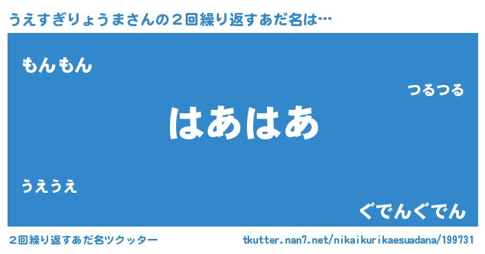 | ヘコむあだ名 | 『うえすぎりょうま(爆)』『うえっふぃ~』 |