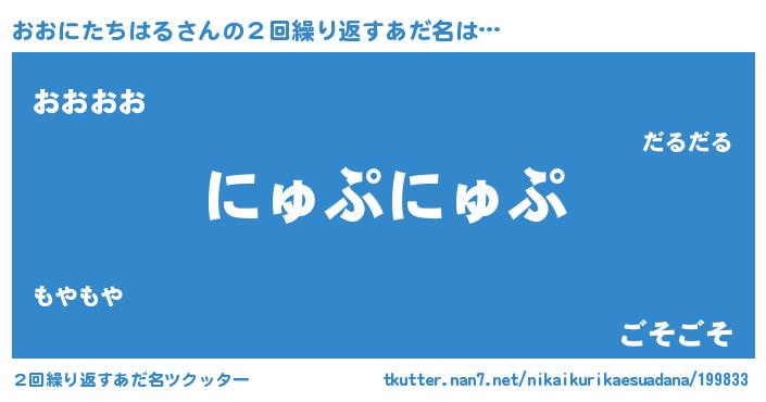 | 意味不明あだ名 | 『とにかく怪しいおおにたちはる』 |