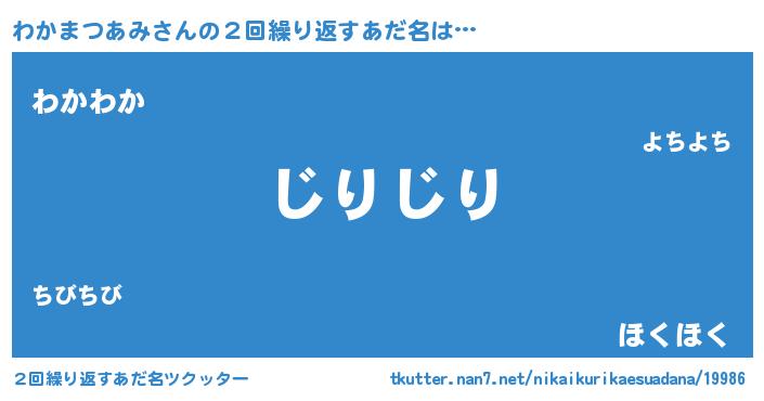 | 意味不明あだ名 | 『住所不定無職わかまつあみ(9歳)』 |