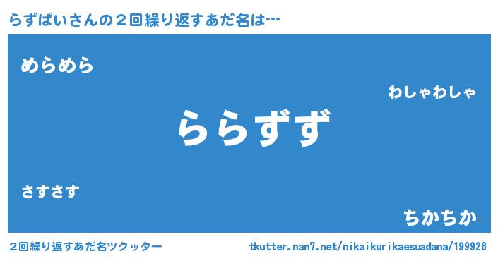 | 可愛いあだ名 | 『らずちー』『らずうちぇる』 |