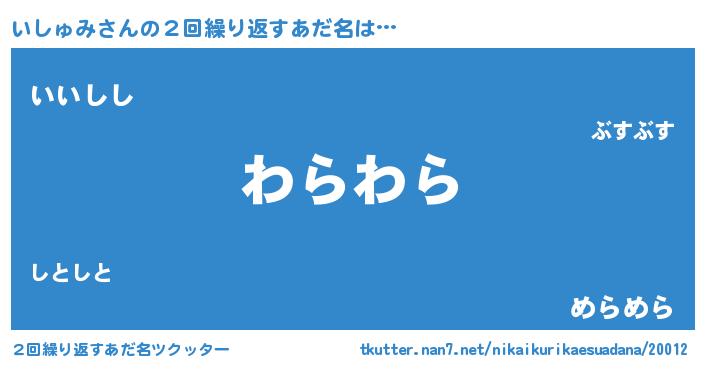 | 意味不明あだ名 | 『ニラ科いしゅみ属』『自称いしゅみ』 |