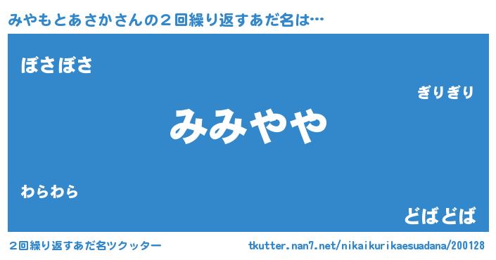 | 意味不明あだ名 | 『みやもとあさかフォーエバー』 |