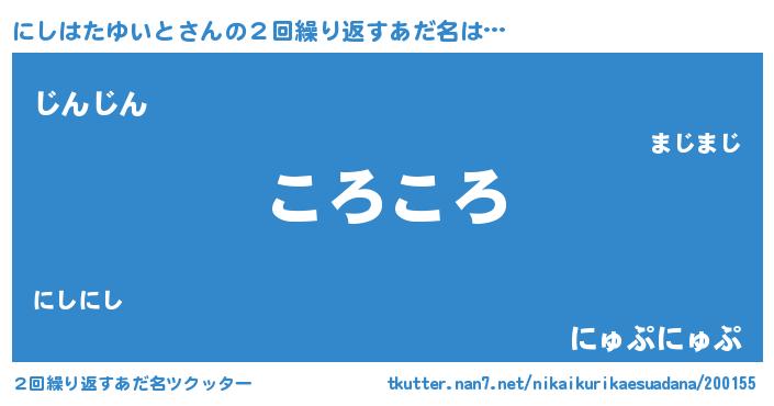 | ヘコむあだ名 | 『にしはたゆいと(笑)』『にしお』 |