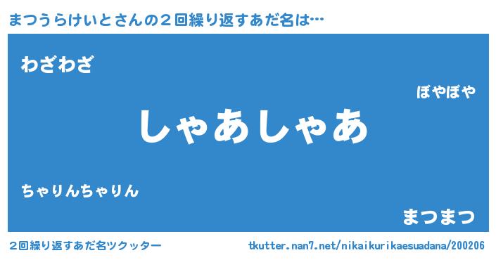 | 料理風あだ名 | 『まつうらけいとのカルパッチョ風』 |
