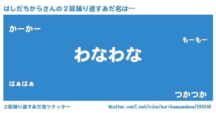 | ヘコむあだ名 | 『はしだちから(爆)』『レバニラ』 |