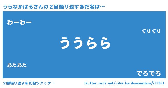 | 意味不明あだ名 | 『うらなかはるフォーエバー』 |