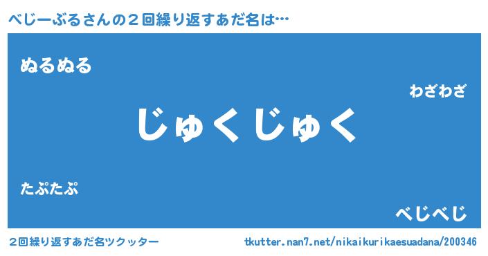 | 意味不明あだ名 | 『住所不定無職べじーぶる(2歳)』 |