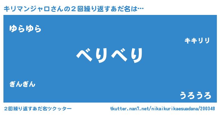 | 男性向けラノベタイトル風あだ名 | 『ノーゲーム・ノーキリマンジャロ』 |