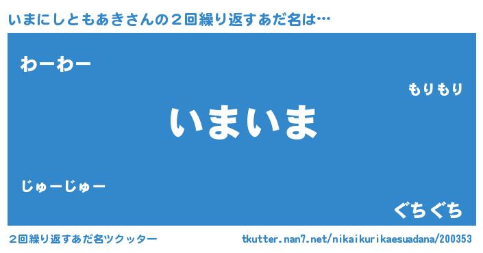 | ヘコむあだ名 | 『いまっふぃ~』『いまにしともあき(笑)』 |