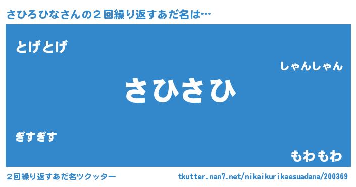 | ヘコむあだ名 | 『さひにー』『さひろひな(小並感)』 |