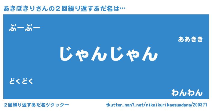 | 意味不明あだ名 | 『住所不定無職あきぼきり(89歳)』 |