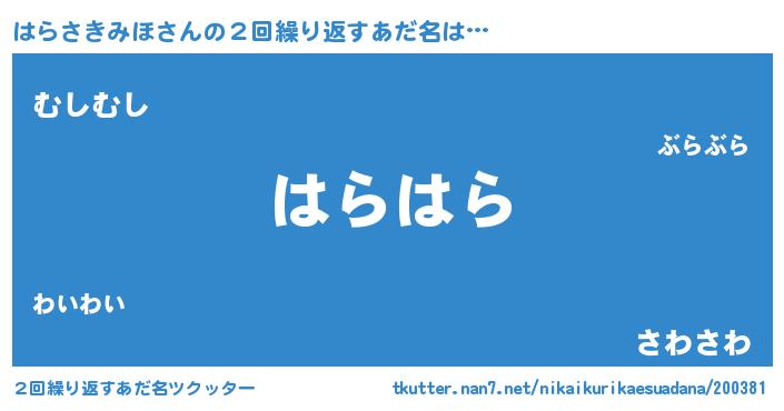 | ヒーロー風カッコイイあだ名 | 『スーパーハラサキミホ』『仮面ハラダー』 |