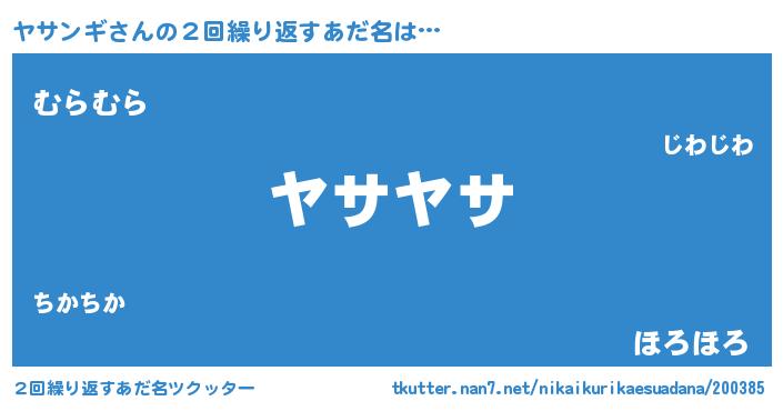 | 意味不明あだ名 | 『ペロリンヤサンギ』『自称ヤサンギ』 |