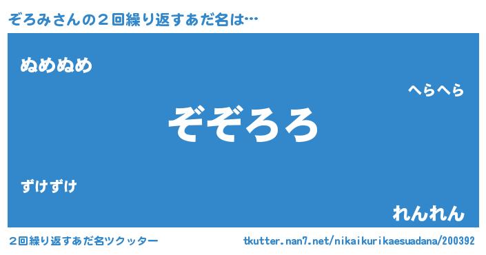| ヘコむあだ名 | 『豆乳』『ぞろお』『ぞろっふぃ~』 |
