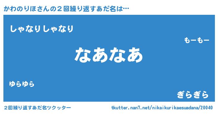 | ヘコむあだ名 | 『かわっ子』『かわのりほ(爆)』 |
