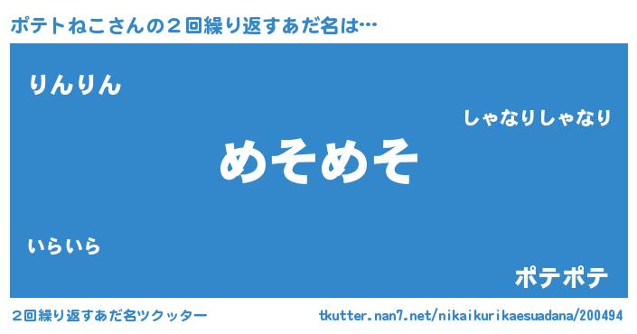 | 意味不明あだ名 | 『自称ポテトねこ』『ペロリンポテトねこ』 |