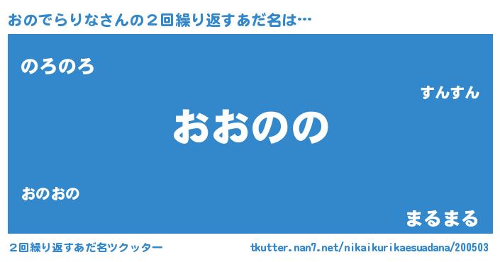 | 意味不明あだ名 | 『おのでらりなフォーエバー』 |